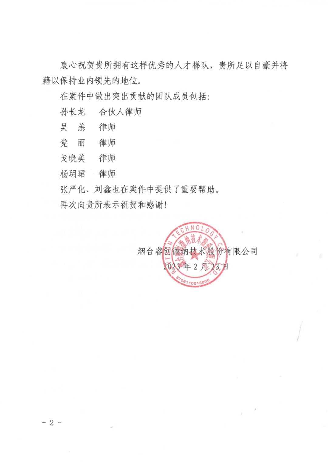 最后,感谢睿创集团知识产权团队对于本案的积极贡献,以及对于澳客的支持与信任,共同成就恶意诉讼案的最终胜利!